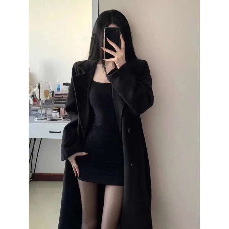 | nameOriginal | Ws Hepburn Style Black Suit Woolen Jacket Women's Autumn and Winter 2023 New Style Small High-end Sense Mid-long Large |