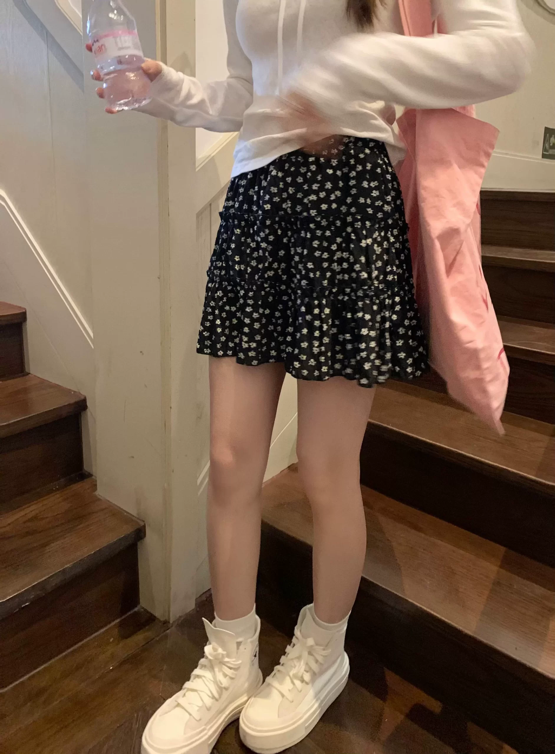 Wu 77 Draped Cotton and Linen Versatile Slim and Sweet Skirt