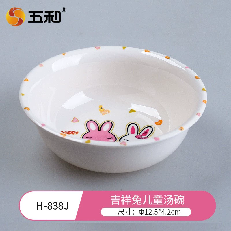 | nameOriginal | Wuhe melamine children's tableware auspicious rabbit imitation porcelain cartoon eating bowl grid plate heat-resistant and fall-resistant lightweight spoon |
