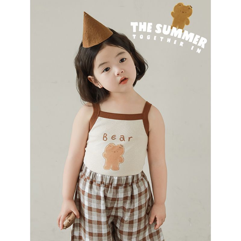 Wuri Boo Girl’s Cartoon Printed Vest 2024 Summer Vest Cute Contrast Color Edge Cool Sling Vest