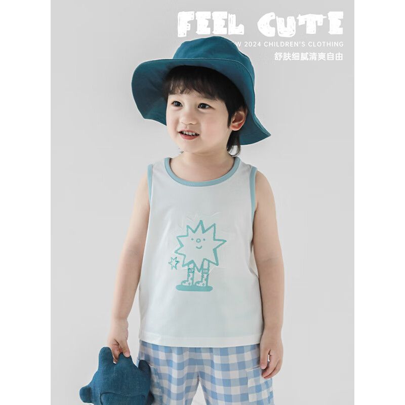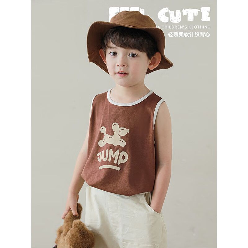 Wuri Boys’ 2024 New Sleeveless Knitted Vest Summer Popular Lightweight Breathable Soft Children’s Vest