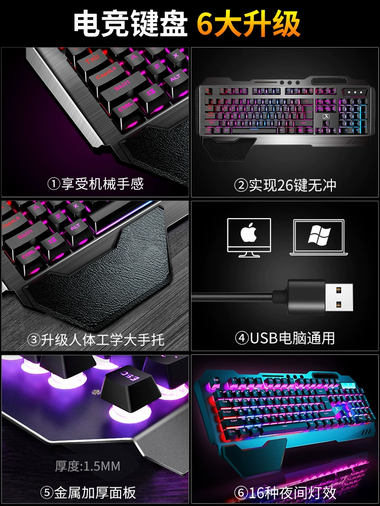 | nameOriginal | Wuxiao Xinmeng mechanical feel game wired keyboard metal thickened heavy panel hand rest marquee backlight computer |