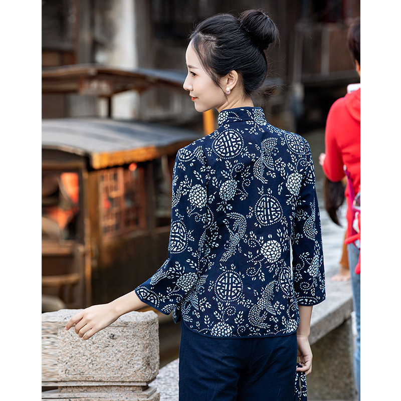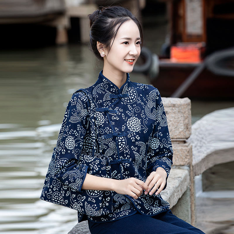 | nameOriginal | Wuzhen Ethnic-style Blue Printed Cloth Women's Long-sleeved Shirt Slant-breasted Chinese Top Performance Clothes Restaurant Work Clothes |