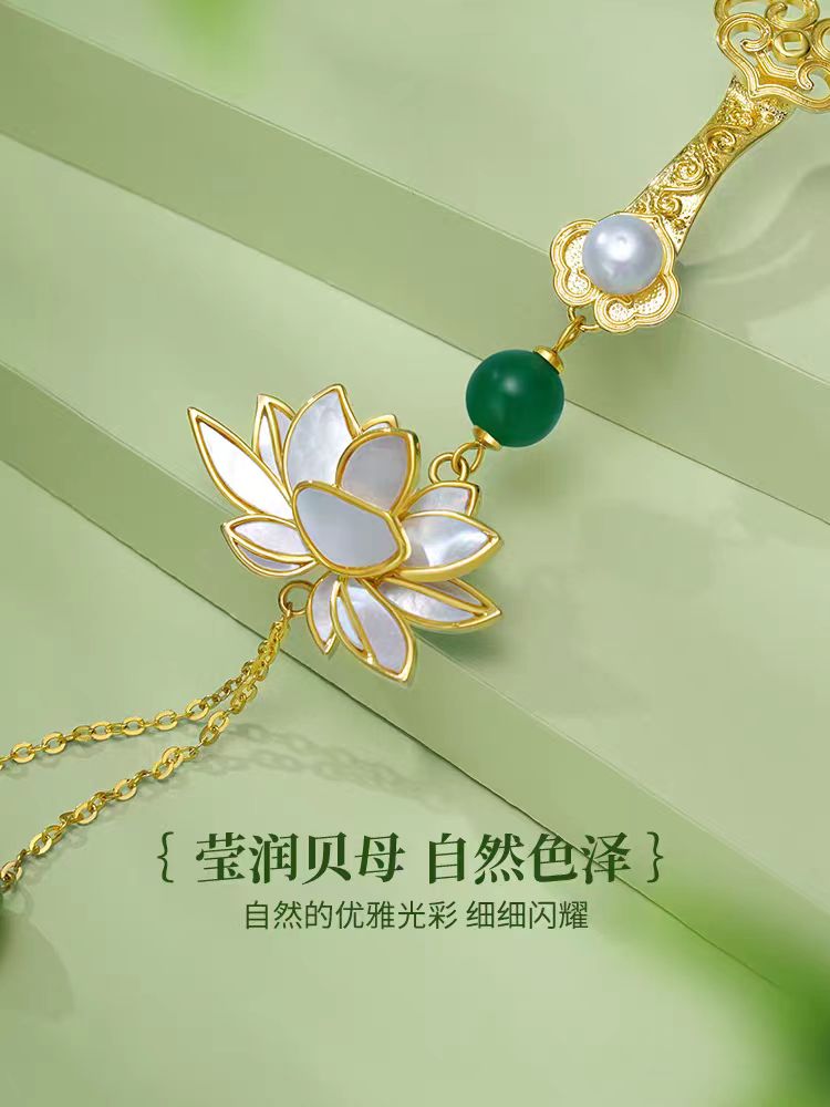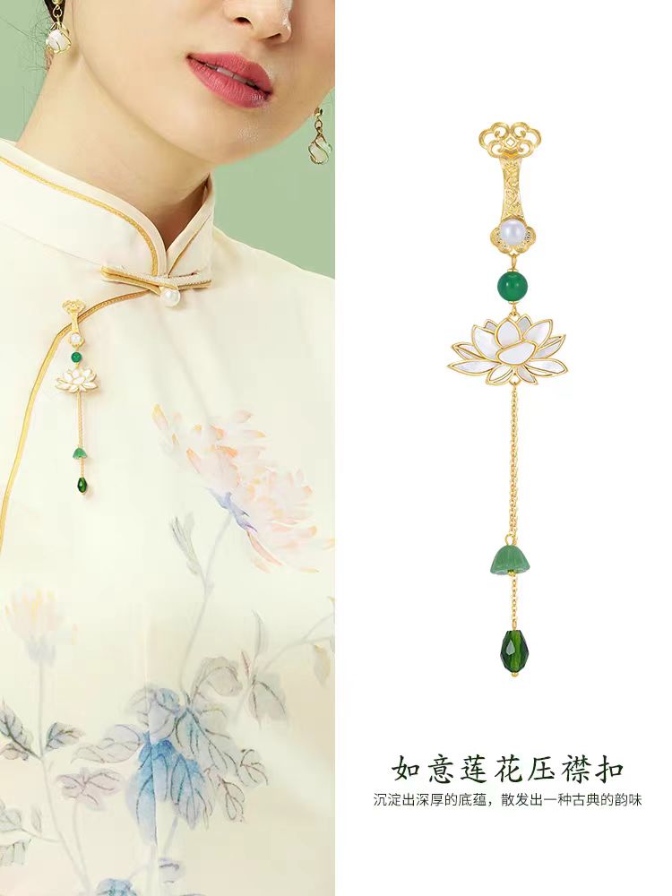| nameOriginal | Ww Chinese style freshwater pearl lotus brooch female natural mother shell cheongsam pressure lapel high-grade tassel clothes pin hanging |