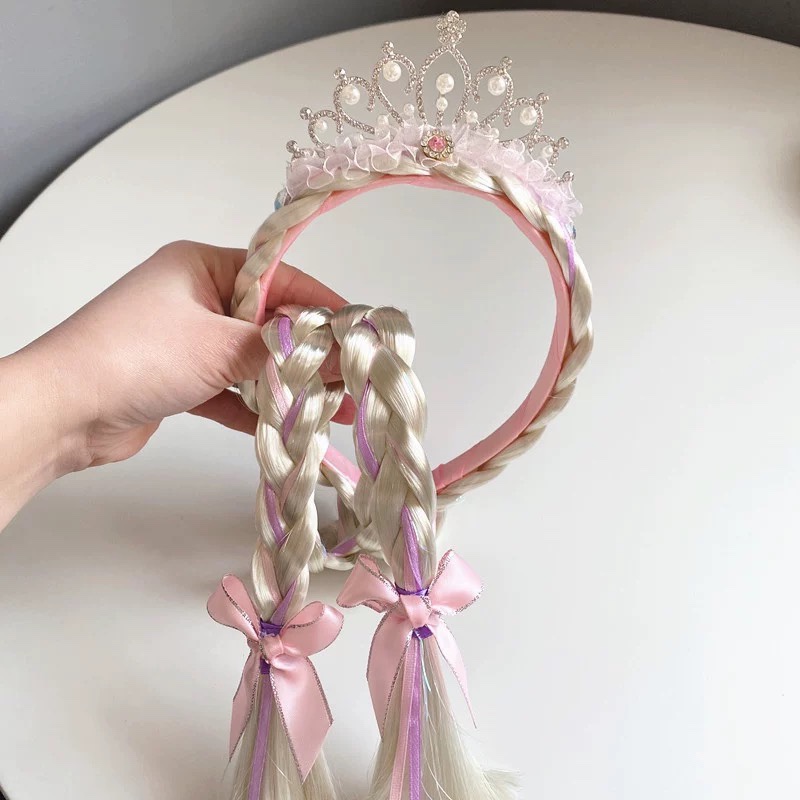 Ww Frozen Children’s Pearl Crowne Wigs Braids Princess Styled Hair Clamp Hair Hoop Hair Accessories for Girls