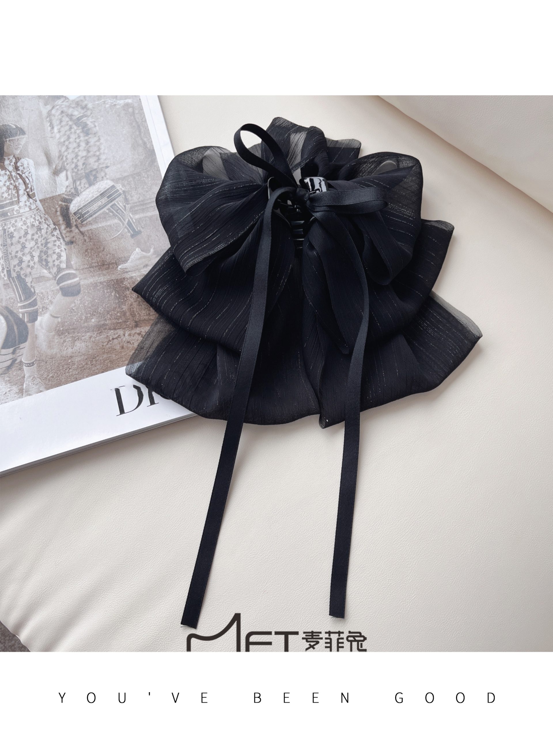 | nameOriginal | Ww Lan One Cardamom Time Grab Clip 2023 New Arrival Bow Lazy Clip Black Ribbon Hair Accessories |
