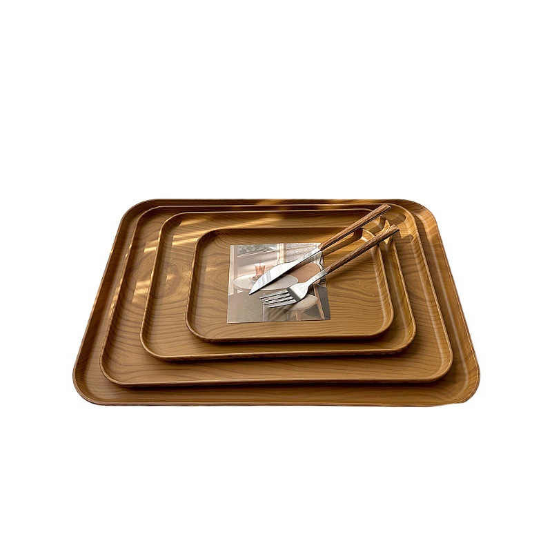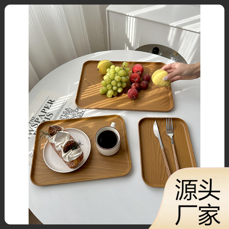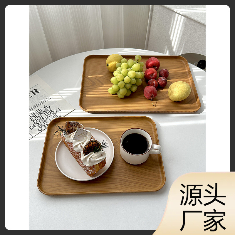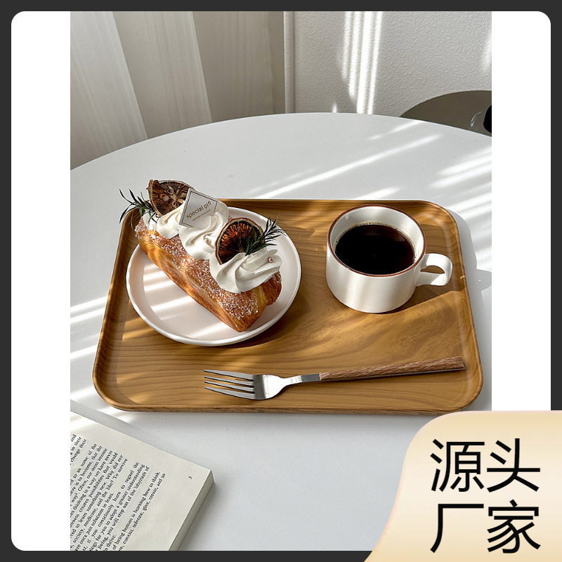 Wwins Style Imitation Wood Grain Tray Rectangular Tea Tray Dinner Plate Cafe Dessert Plate Storage Plate Cake Plate Snack