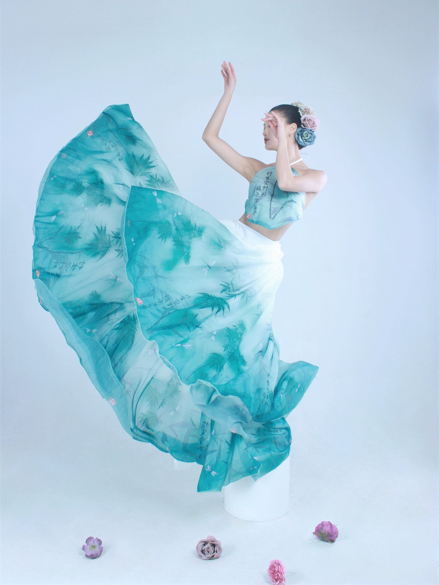 WYZ cover Chinese elements bamboo bellyband big hem skirt