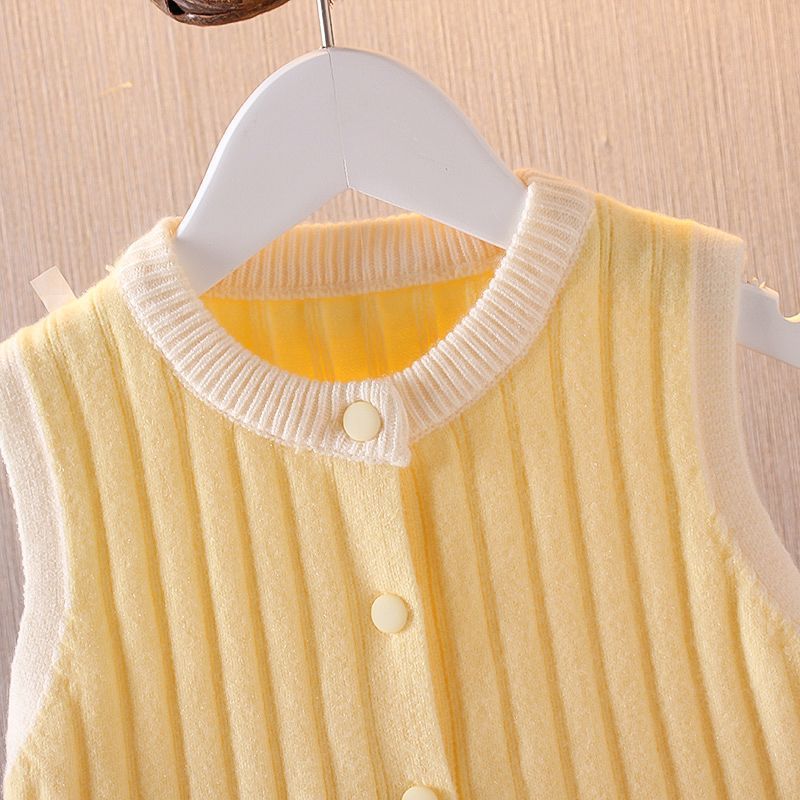 WZXSK Children’s Knitted Vest Outer Wear Cute Foreign Style Sleeveless Cardigan Coat Baby Spring and Autumn New Sweater Back