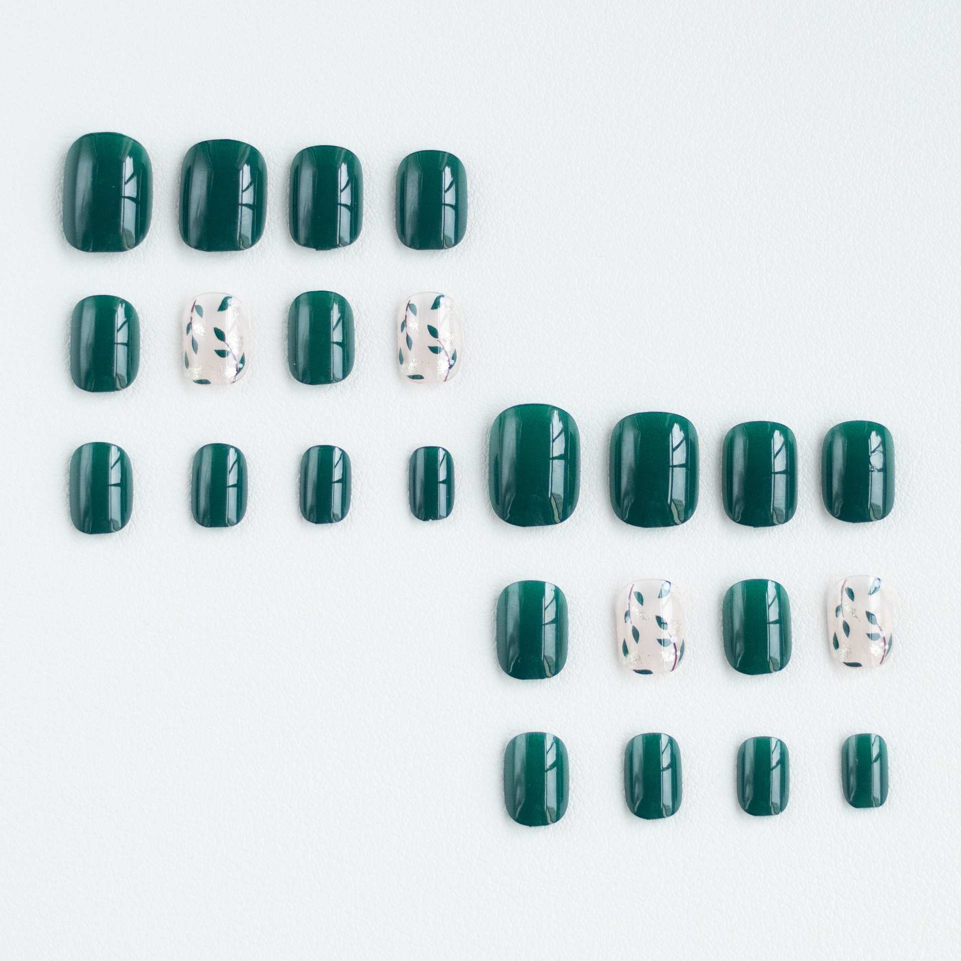 | nameOriginal | X-0348 wear armour European and American short round jade green solid color gold flash leaves wear nail art factory outlet 24 pieces |