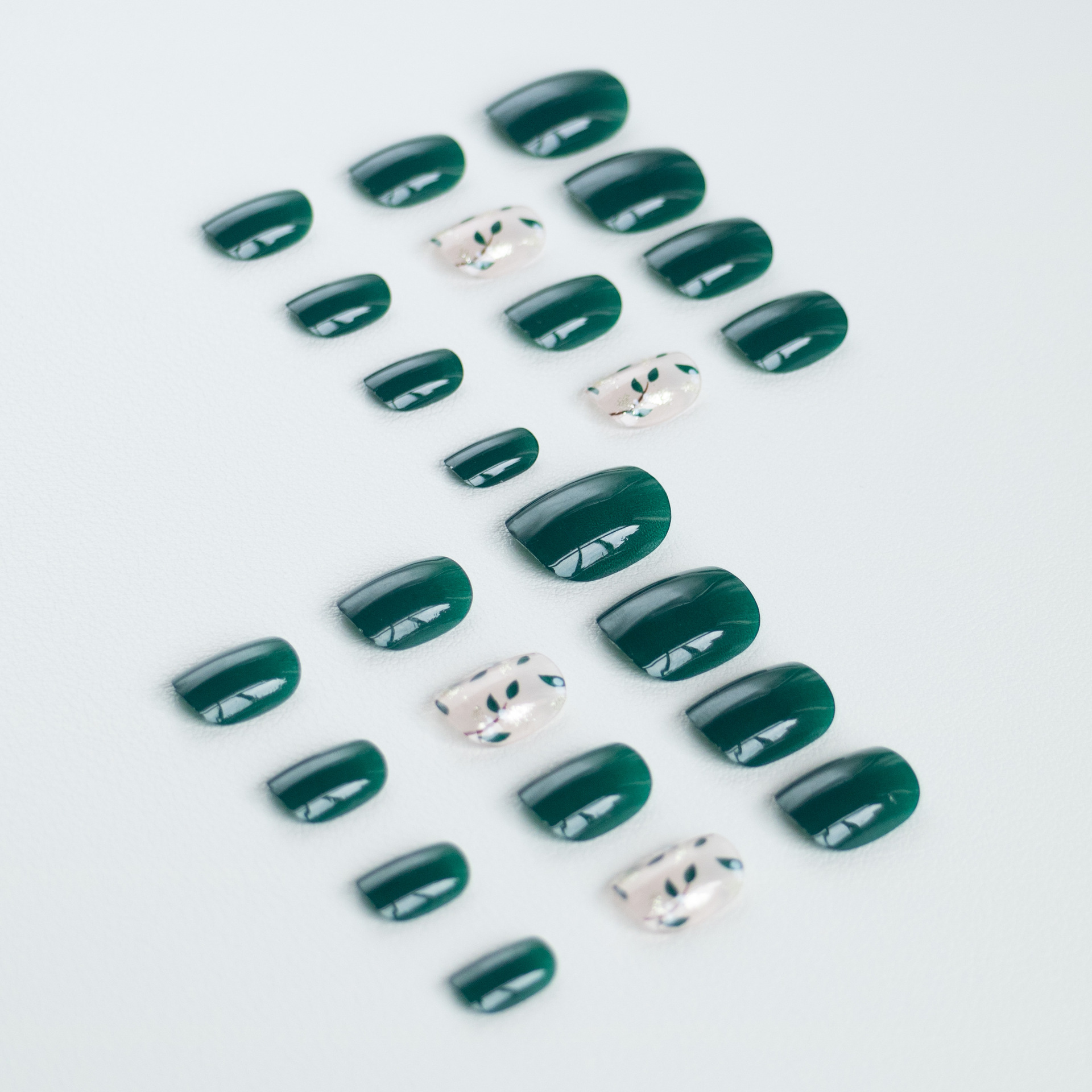 | nameOriginal | X-0348 wear armour European and American short round jade green solid color gold flash leaves wear nail art factory outlet 24 pieces |