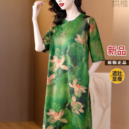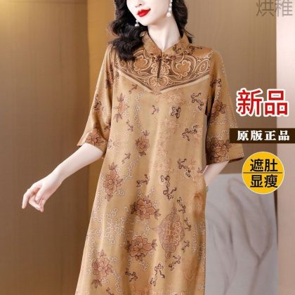 | nameOriginal | X 3 Your Lady Cheongsam Skirt Women's Retro Style Loose Belly Covering Middle-aged Mother's Dress |