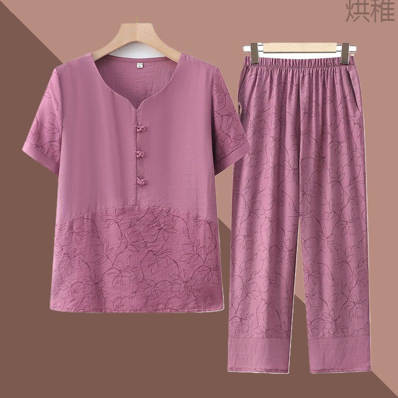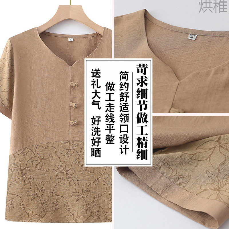 X 4 Mother's Day Mother's Summer Clothes suit Middle-aged and Elderly T-shirt Grandma's Summer Clothes Old Lady's Cotton and Linen