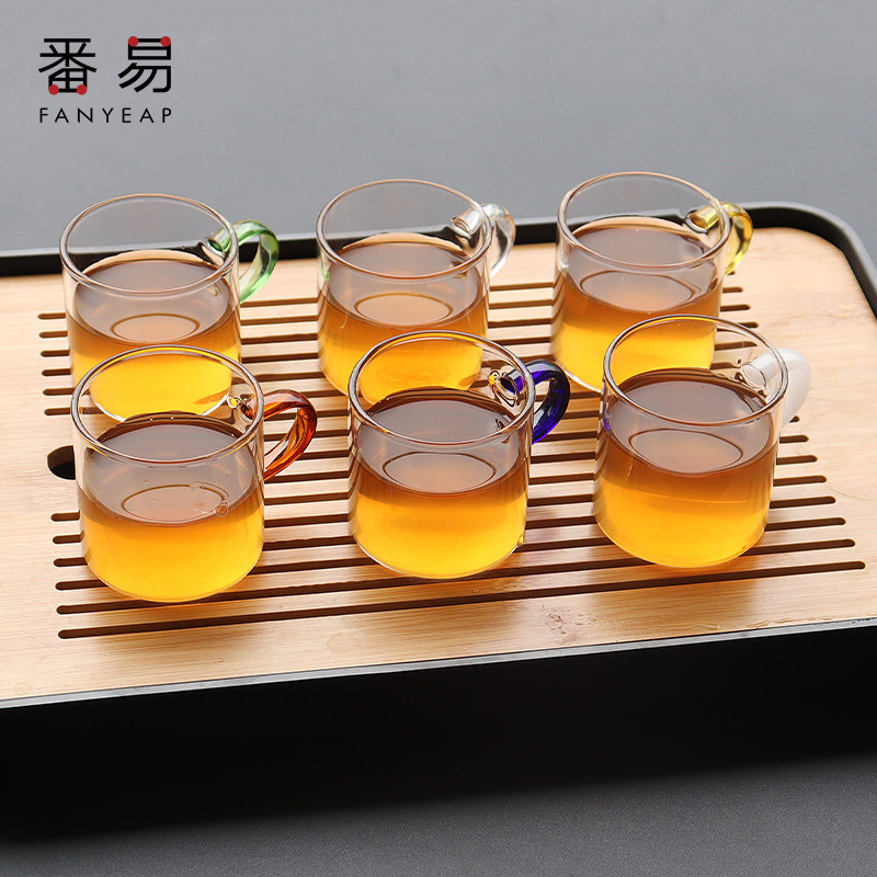 | nameOriginal | X1AW 6-piece glass kung fu tea cup thickened transparent Tea Cup heat-resistant handle small size household tea set |
