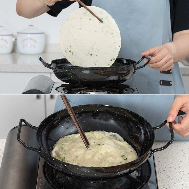 X1AW enamel old-fashioned traditional double-ear frying Chinese wok dry pot uncoated double-ear thickened round bottom flat bottom