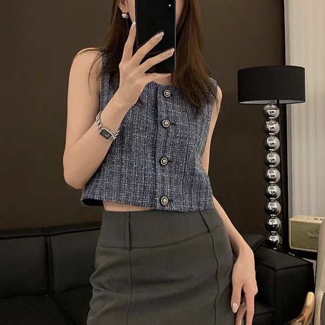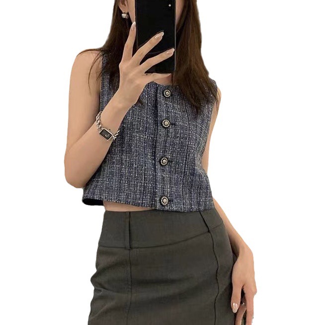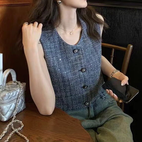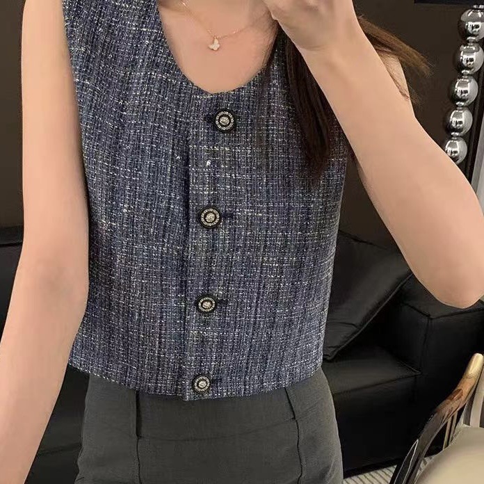 X2024 Spring and Summer New Texturous Full Woven Small Chanel Style Sleeveless Round Neck Casual Elegant Vest
