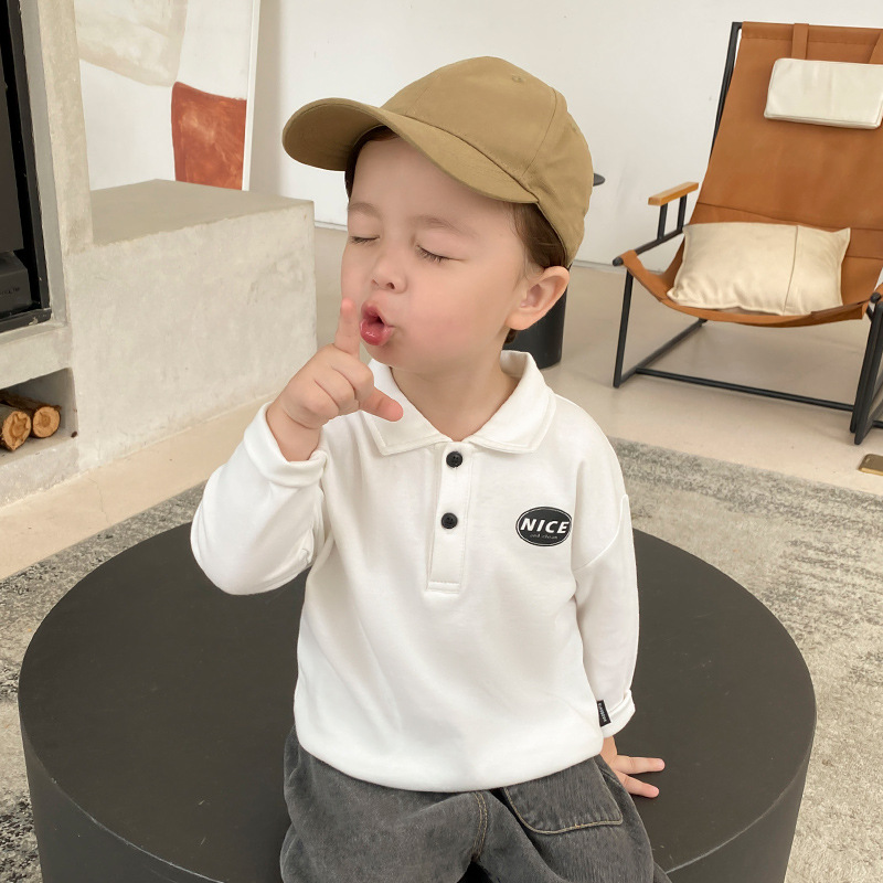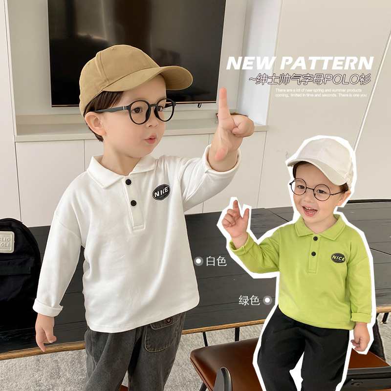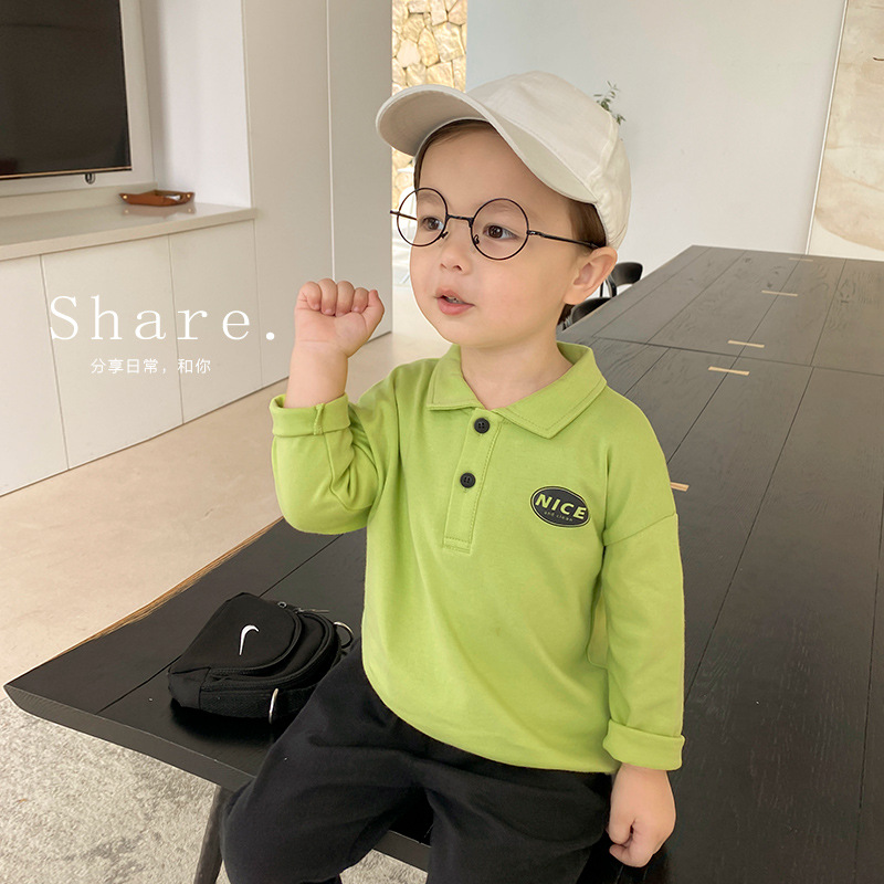 X2208 Boys' Baby Polo Shirt Long Sleeve T-Shirt Autumn Spring and Autumn Baby Base Shirt Korean Style Trendy Kids