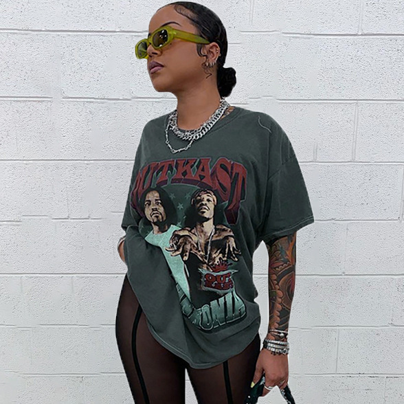 | nameOriginal | X22TP128 European and American women's short-sleeved summer T-shirt 2023 Summer new printed round neck casual loose T-shirt wholesale |