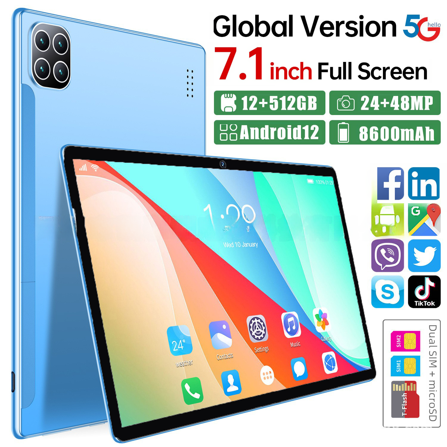 | nameOriginal | X5 Tablet PC Dual Card Dual Stay Google English Version 12+512 Android 12 One Piece in Stock Netcom |