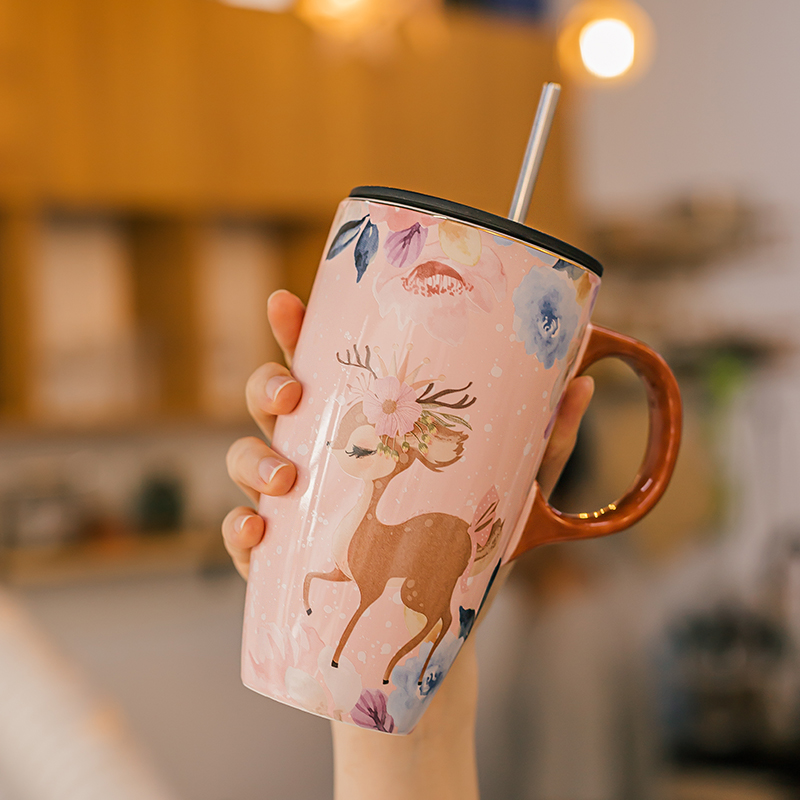 | nameOriginal | X70T fresh ceramic mug with lid spoon large capacity coffee cup for girls office home cute drinking water |