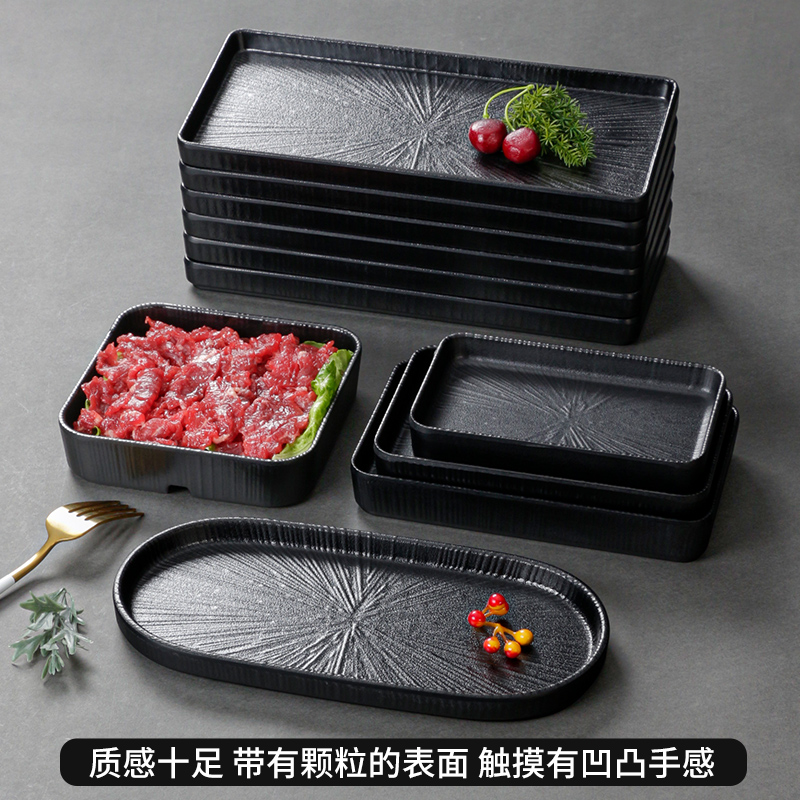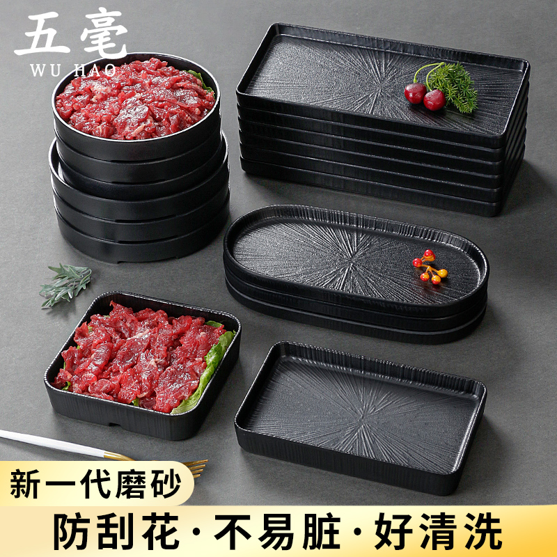 X70T melamine tableware black plate dinner plate cooking side dish beef hot pot restaurant Korean barbecue plate commercial meat plate