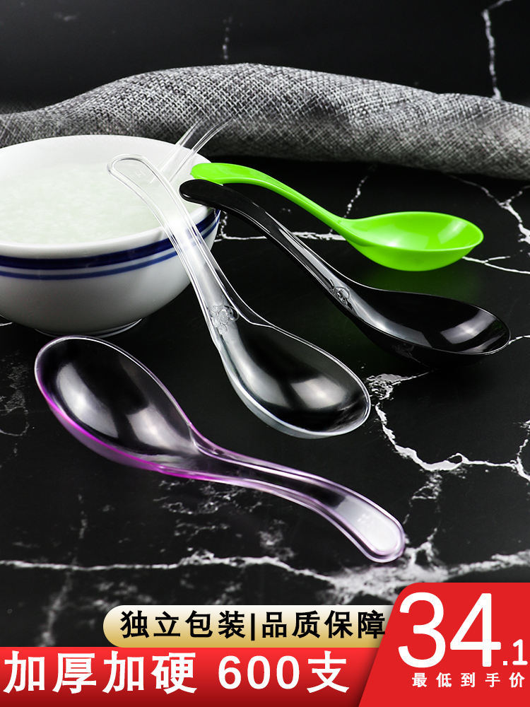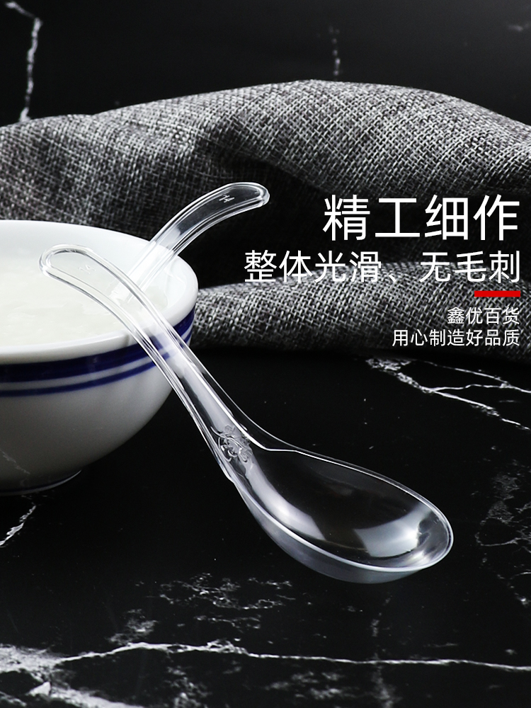 X70T thickened disposable spoon individually packaged plastic takeaway soup spoon transparent crystal spoon long handle rice porridge dessert