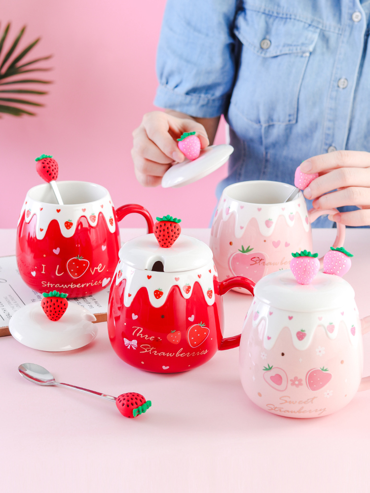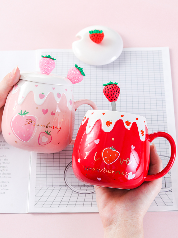 | nameOriginal | X70Tins Cute ceramic cup with lid spoon coffee breakfast cup girl heart strawberry mug couple home |