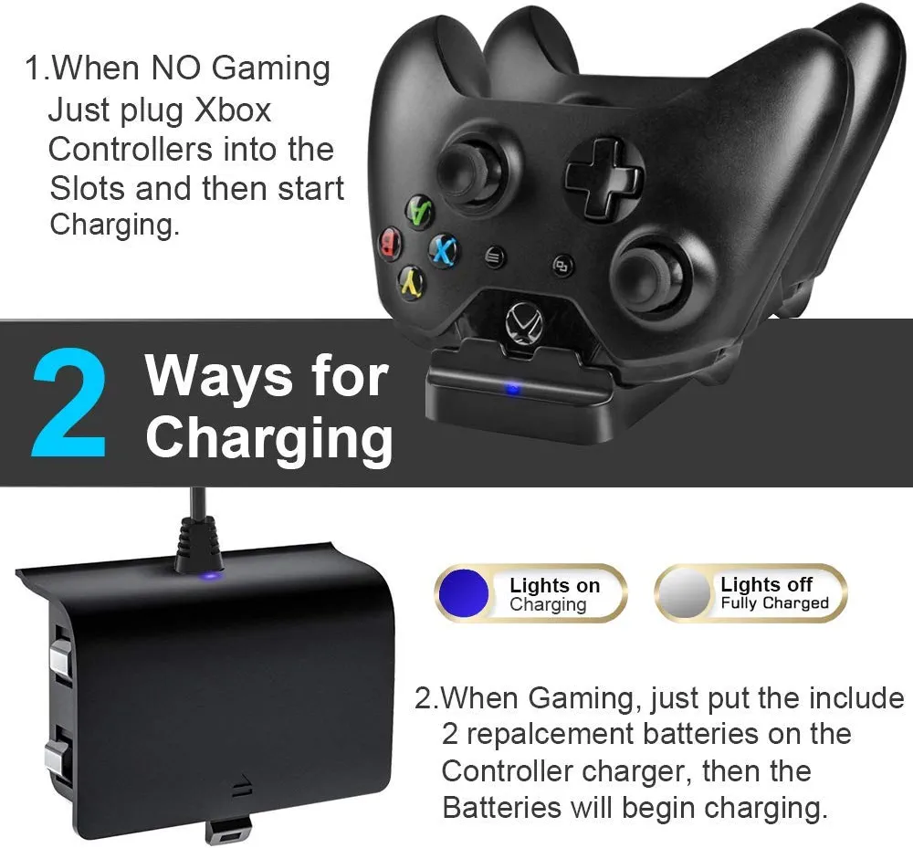 Say goodbye to the hassle of constantly replacing batteries and hello to uninterrupted gaming with the Rechargeable Battery Packs & Dual Charging Station Charger Dock for Xbox One (S/X).