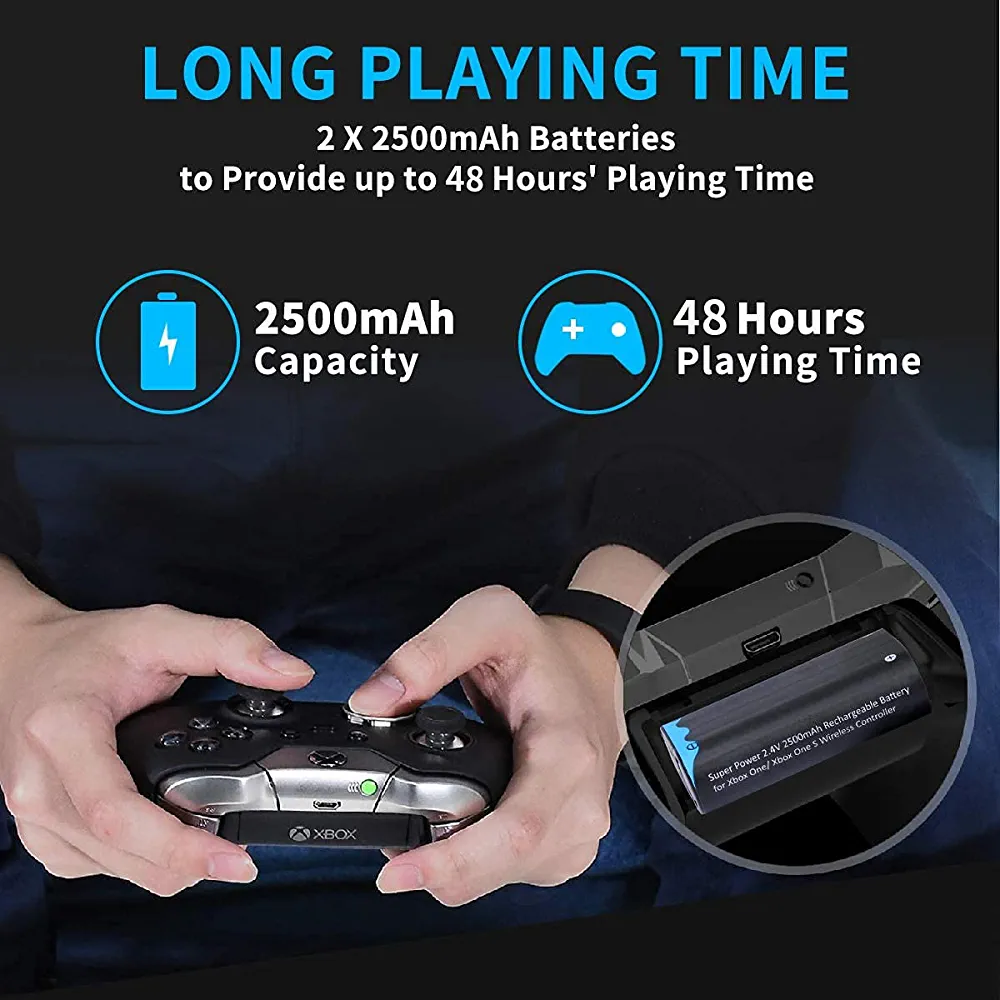 Rechargeable Battery Pack for Xbox with 2-Slot Charger – Replacement Batteries for Xbox One/Xbox One S/Xbox One X/Xbox One Elite/Xbox Series S, X Wireless Controller