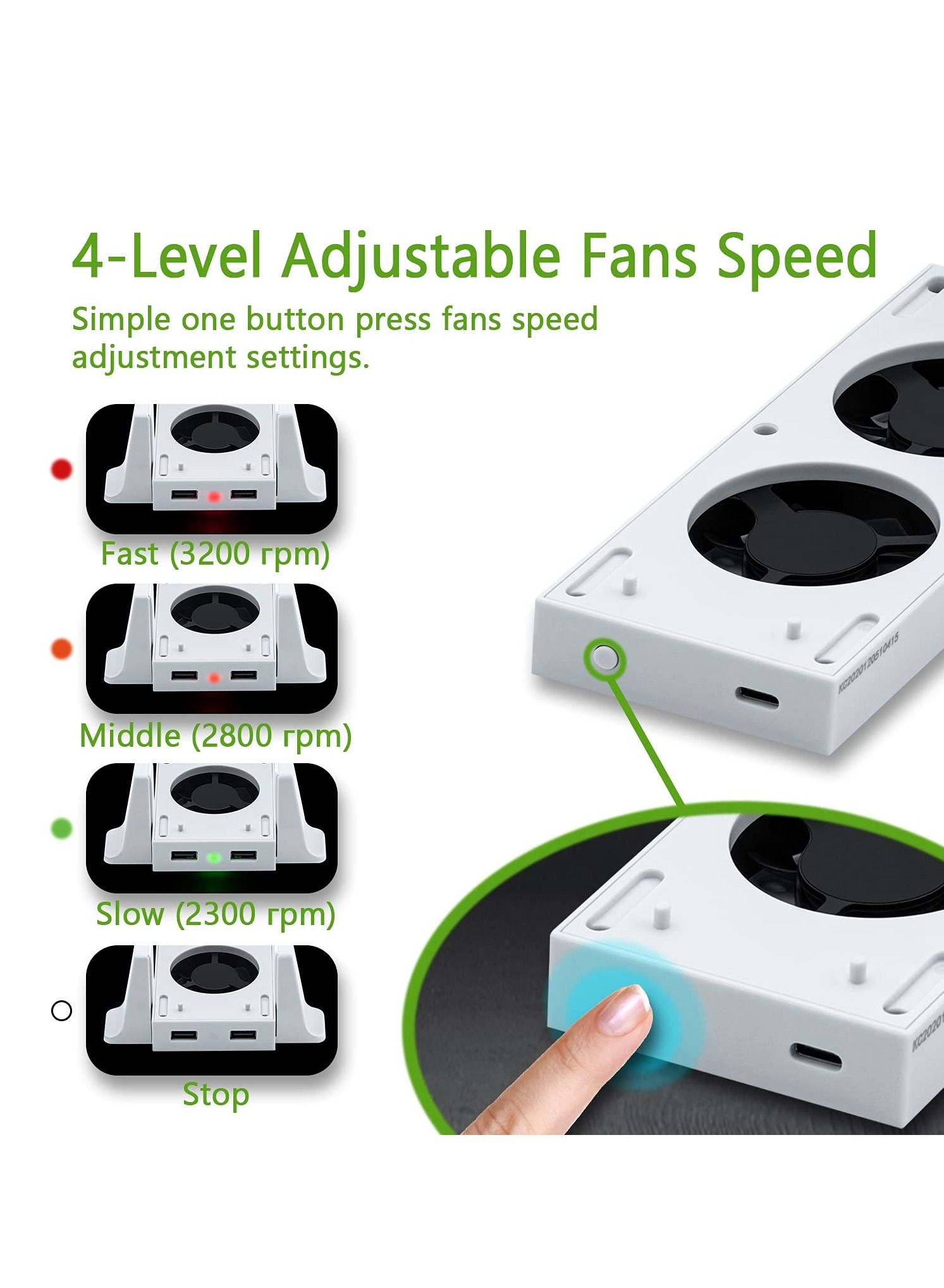 Introducing the Vertical Stand Cooling Fan for Xbox Series S – the ultimate accessory for serious gamers! This cooling stand is specifically designed for the Xbox Series S, providing optimal cooling and ventilation to keep your console running smoothly during intense gaming sessions. The stand features a powerful cooling fan that effectively dissipates heat, preventing your console from overheating and prolonging its lifespan. The stand also comes equipped with two USB ports, allowing you to charge your controllers or other devices while you play. The LED indicator adds a stylish touch to your gaming setup, while also providing a visual cue for when the fan is in operation. With its sleek and compact design, this cooling stand is the perfect addition to any gaming setup. So why wait? Upgrade your gaming experience today with the Vertical Stand Cooling Fan for Xbox Series S!