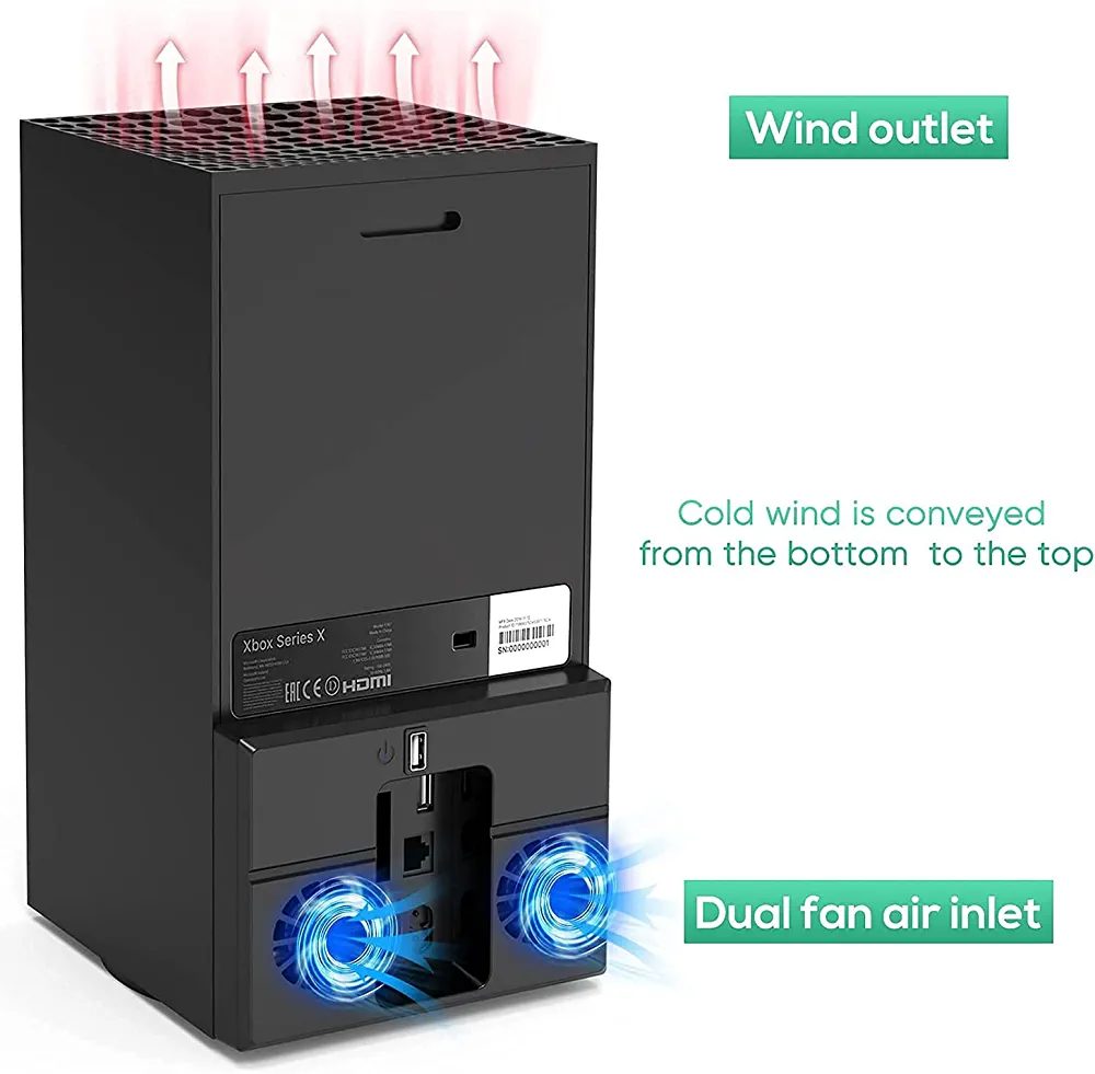 Introducing the Cooling Fan Compatible with Xbox Series X Console! This innovative accessory is designed to keep your Xbox Series X console running smoothly and efficiently, even during extended gaming sessions. With its dual cooling fan system, this back fan is specifically engineered to provide optimal airflow and ventilation, preventing your console from overheating and potentially causing damage.