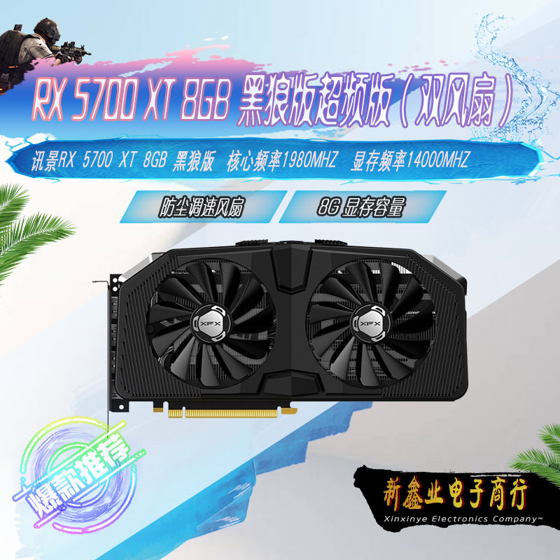 | nameOriginal | XFX XFX RX 5700XT Black Wolf overclocking edition (dual fan) 8GB video memory 14Gbps frequency graphics card |