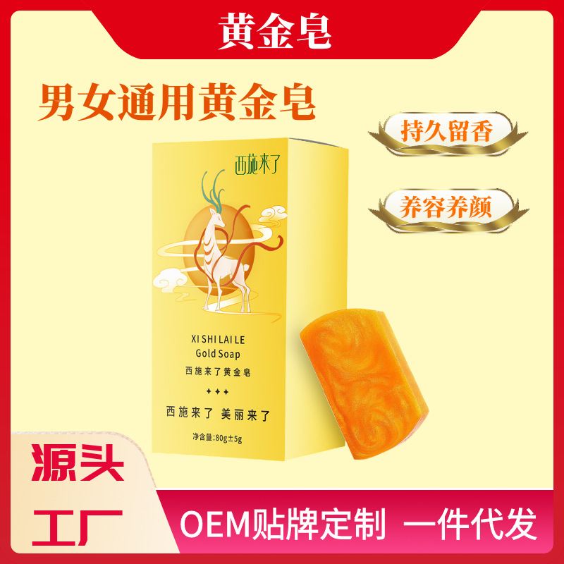 | nameOriginal | Xi Shi has come to beauty gold soap to clean and remove makeup soap for men and women to clean their faces and wash their faces with fragrance |