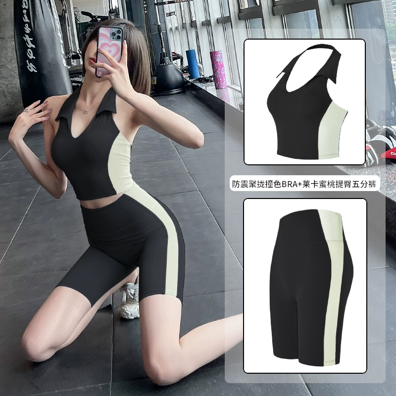 | nameOriginal | Xia Lan pattern contrasting color high waist cycling sports fitness suit |