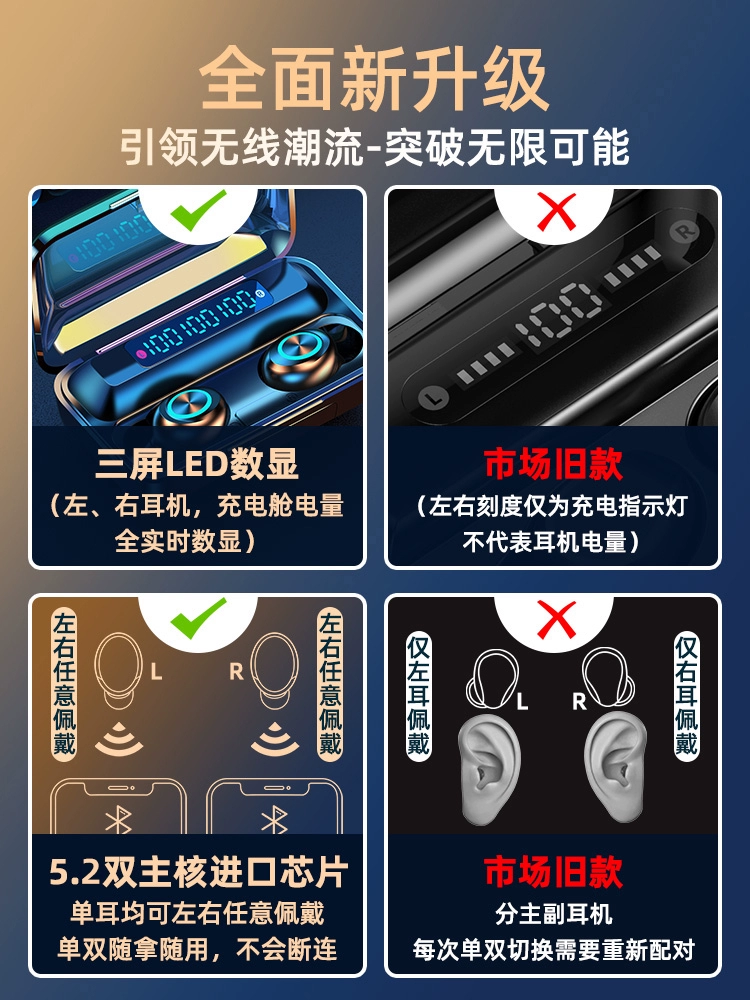 Xia Xin True Wireless Bluetooth Headset 5.2 High-End 2022 New TWS High-Looking Sound Quality Super Good In-Ear Sports Super Long Battery Life for Boys and Women Suitable for Huawei Vivo Apple Oppo