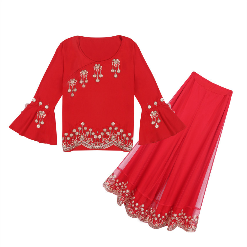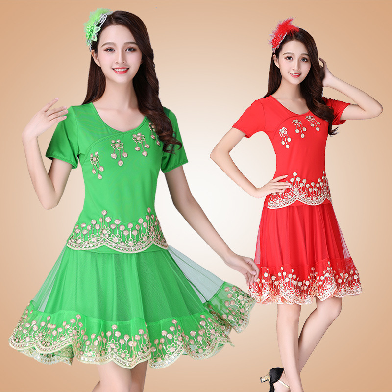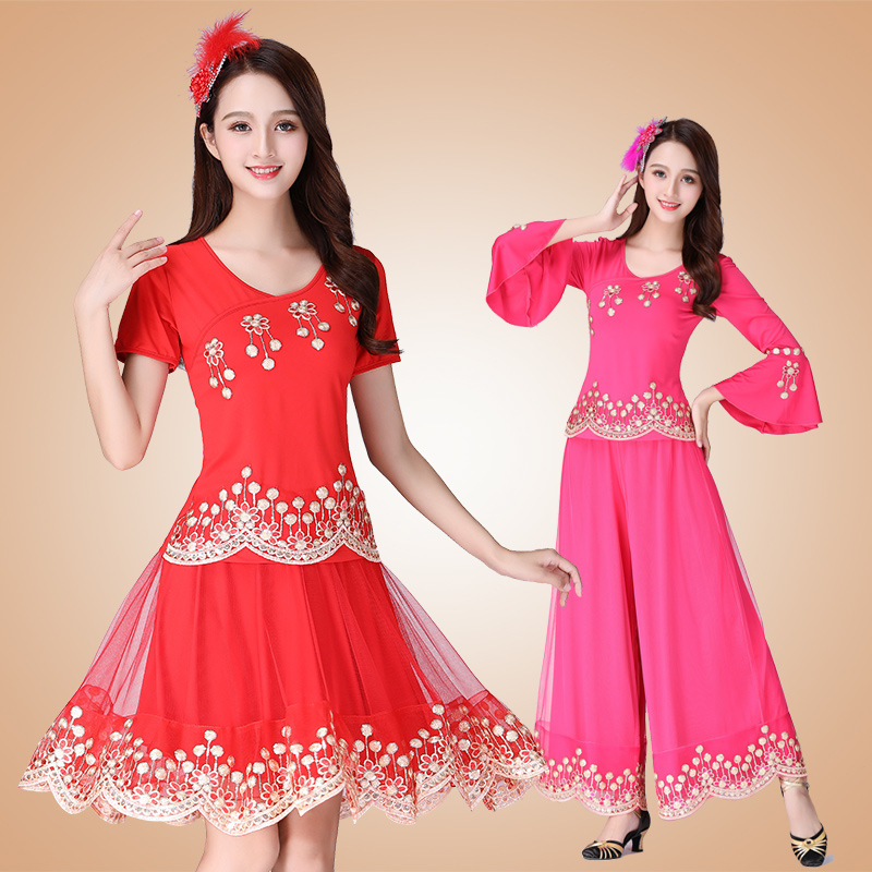 | nameOriginal | Xianghui Ethnic Square Dance Costume New Suit Adult Performance Costume Two-Piece Dance Costume |