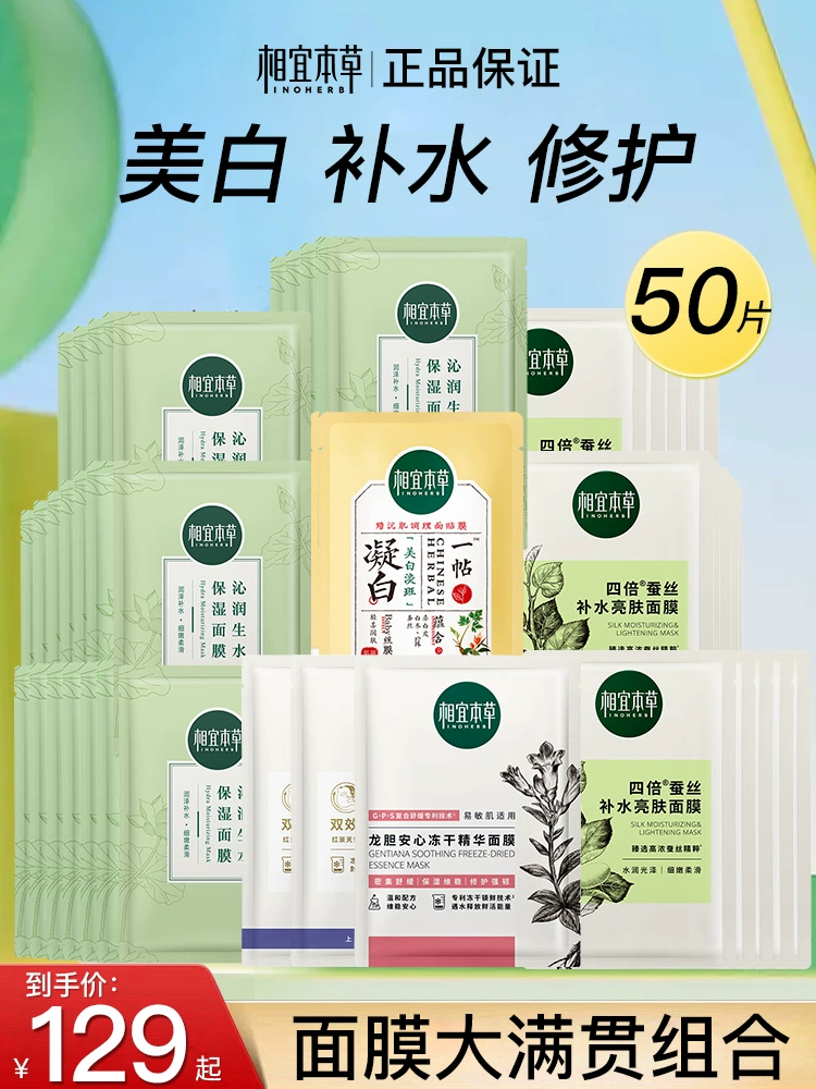 Xiangyi herbal freeze-dried facial mask, hydrating, moisturizing, whitening, lightening spots, removing yellowishness and dullness, staying up late, official flagship store genuine product