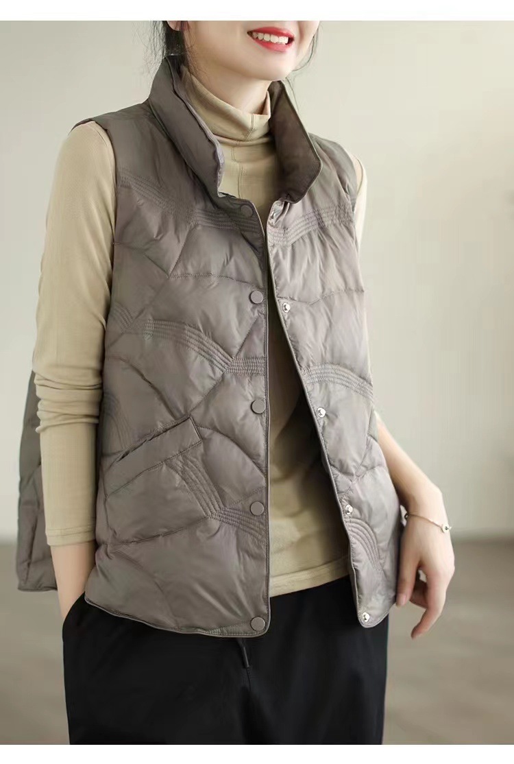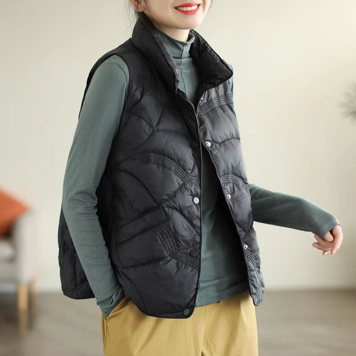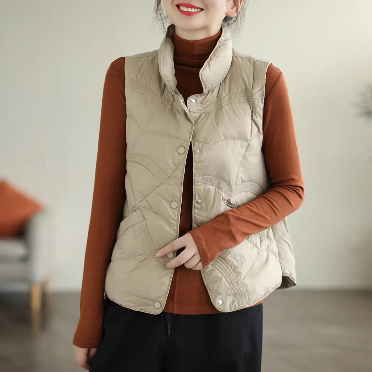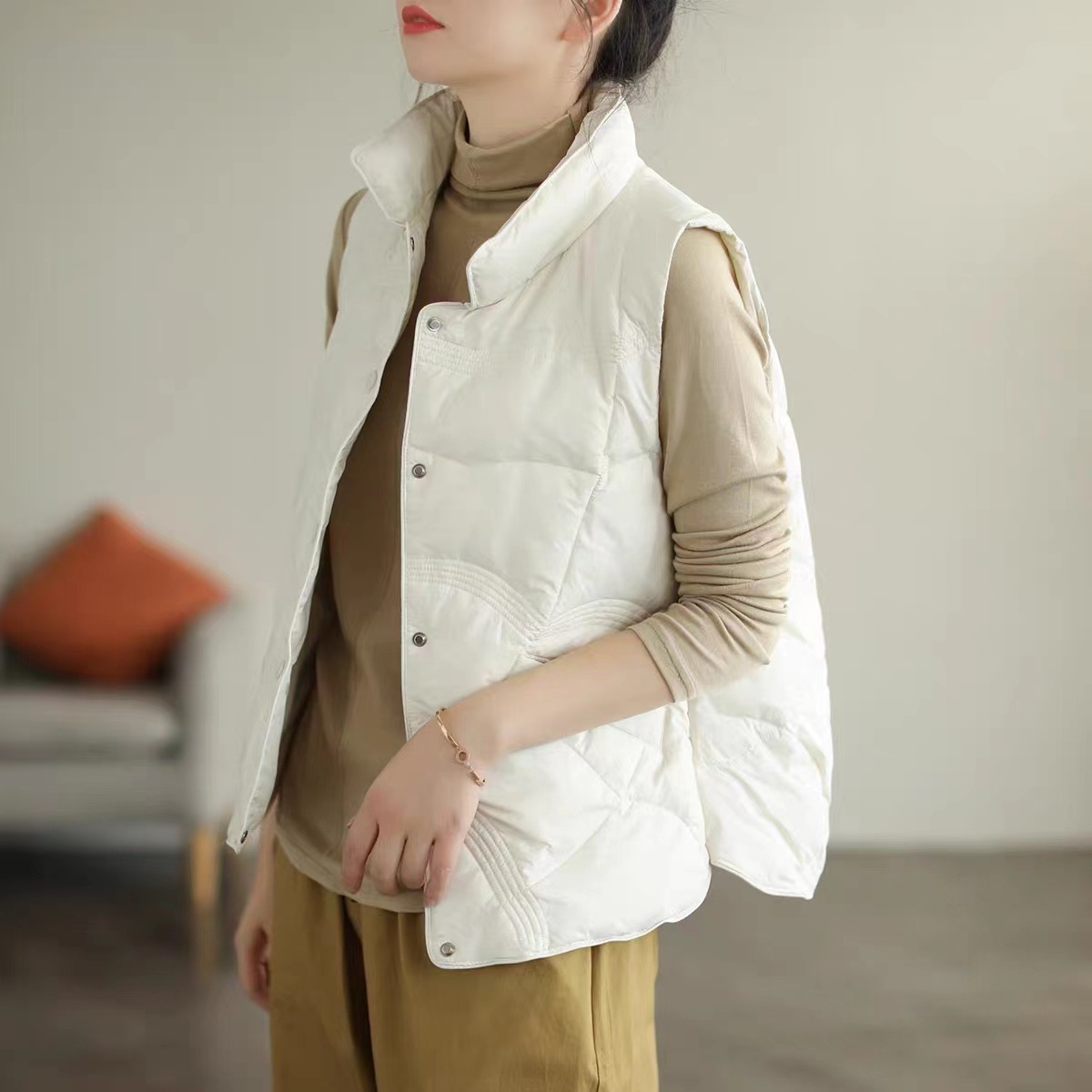 Xiangyun down vest women's artistic autumn and winter warm light white duck down sleeveless vest stand collar short vest