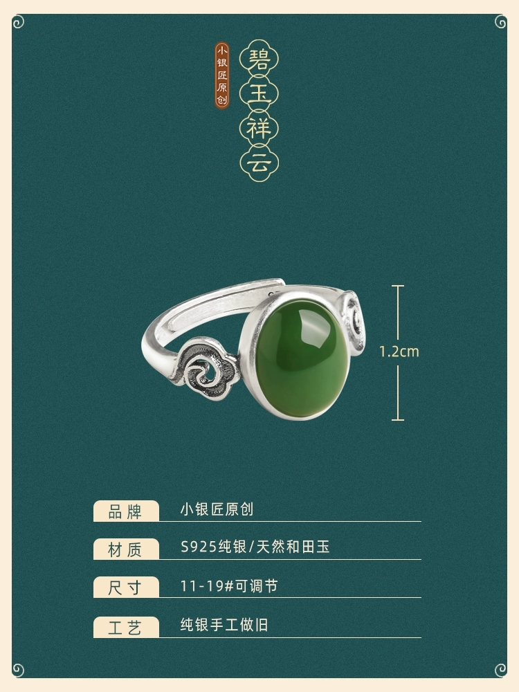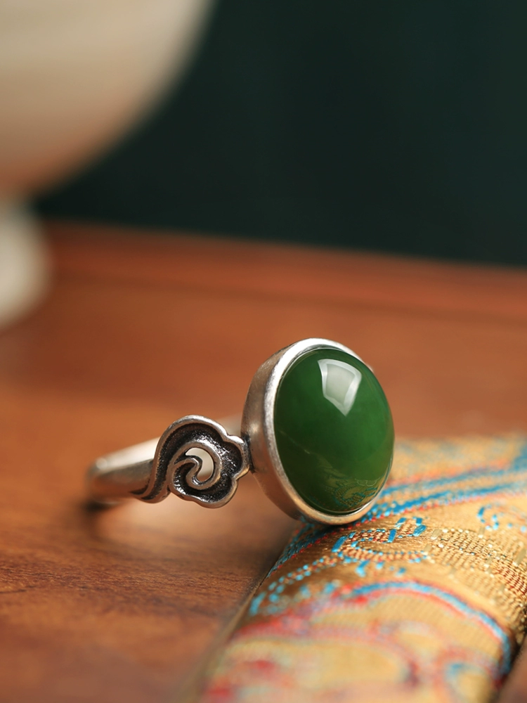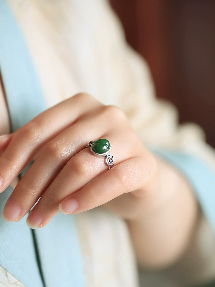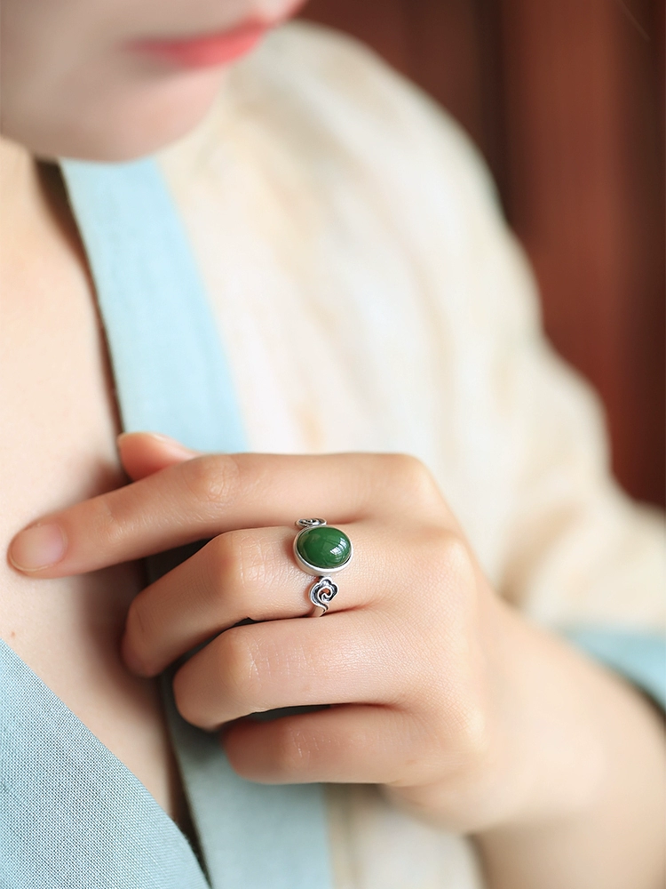 | nameOriginal | Xiangyun Jasper, Small silversmith sterling silver natural Hetian jade ring for women high-end index finger ring jade emerald |