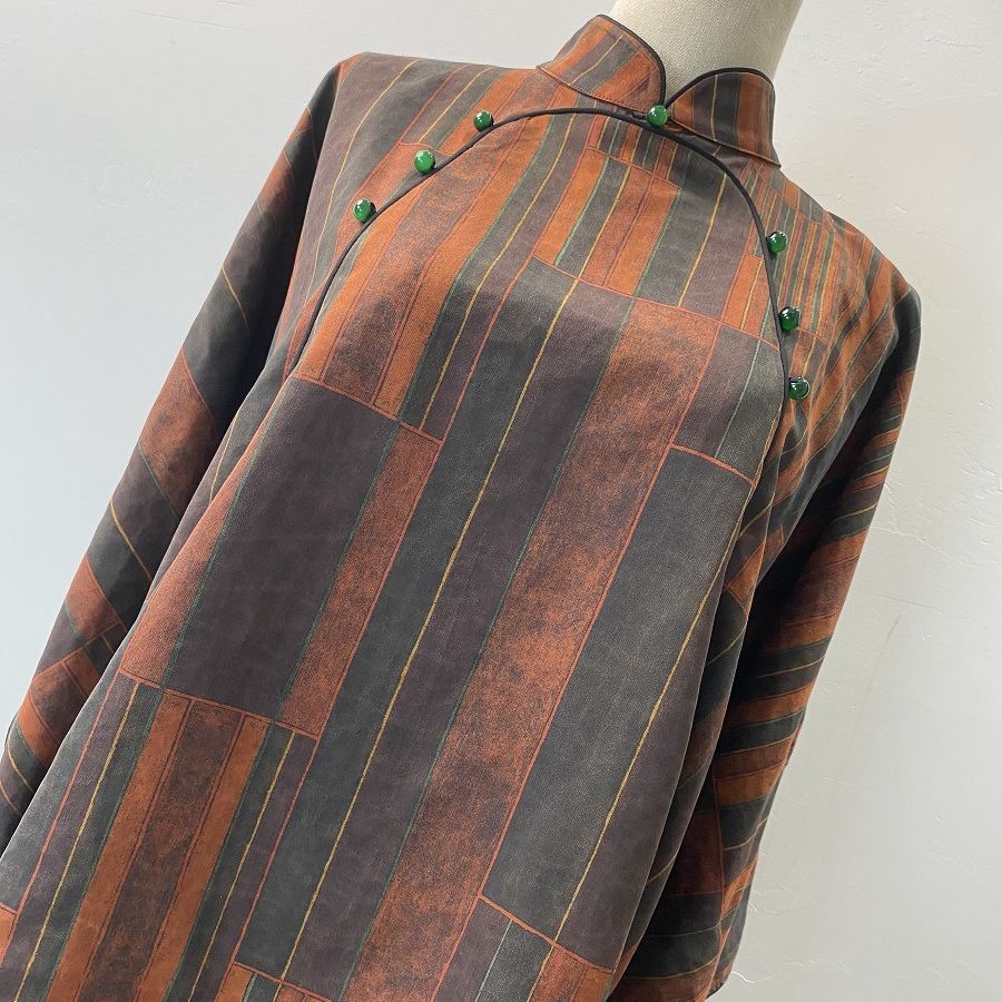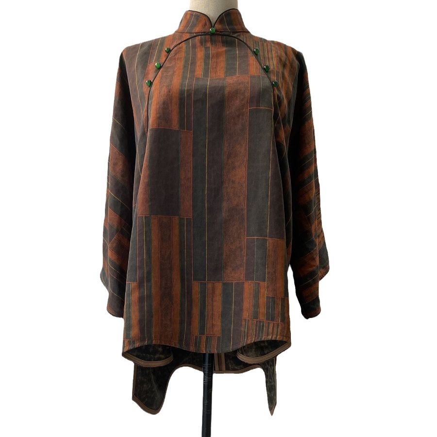 | nameOriginal | Xiangyun yarn improved Tang suit women's new Chinese style loose silk top Autumn New mulberry silk striped tea clothes |
