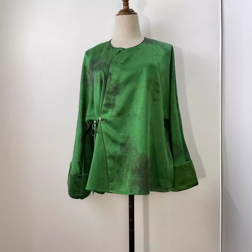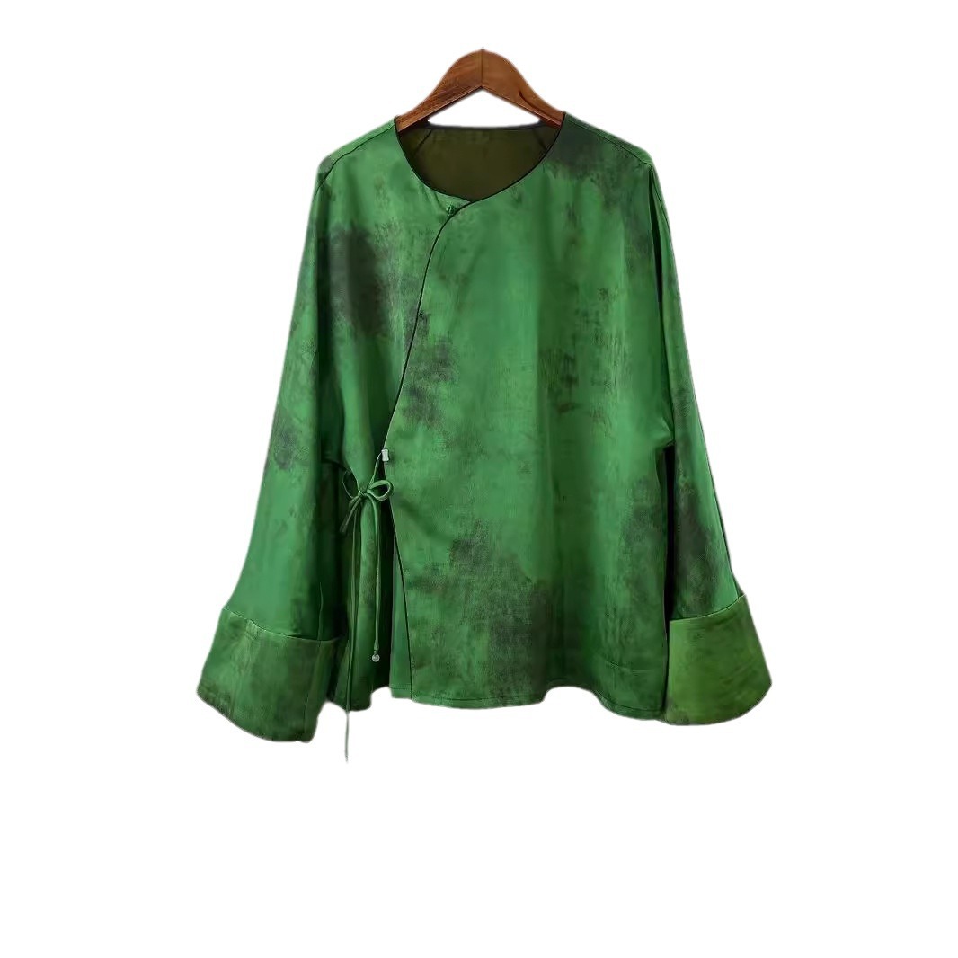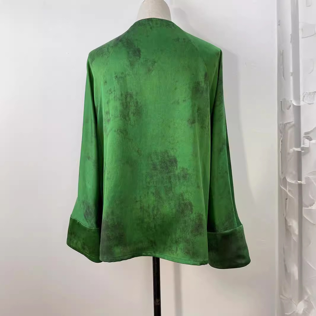 | nameOriginal | Xiangyun Yarn New Chinese Style National Style Improved Women's Coat Emerald Green Heavy Satin Tie-Dye 100% Mulberry Silk Lace-Up Top |