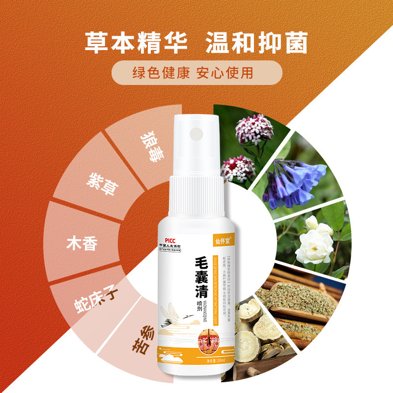 | nameOriginal | Xianhuaitang Hair Follicle Cleansing Spray Head and Back Horny Pimples Hair Follicle Cleansing Cream Antipruritic Herbal Antibacterial Liquid |