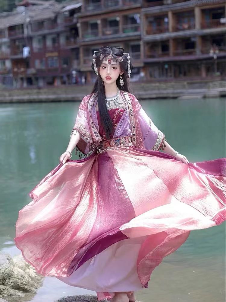 Xianjian Zi Xuan Same Style Ancient Costume Han Suit Miao Jiang Skirt Girl's Exotic Style Han Element Clothing Ethnic Style Decoration