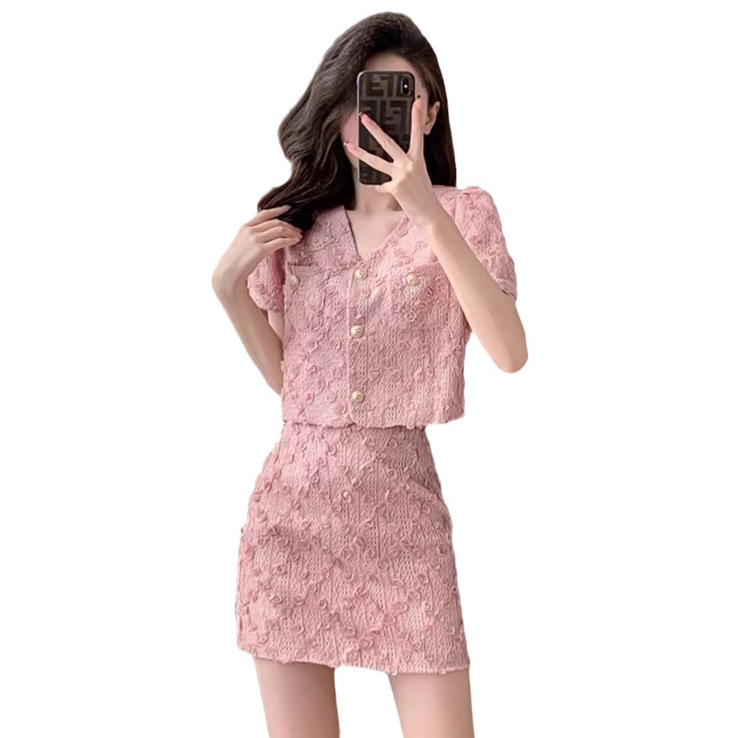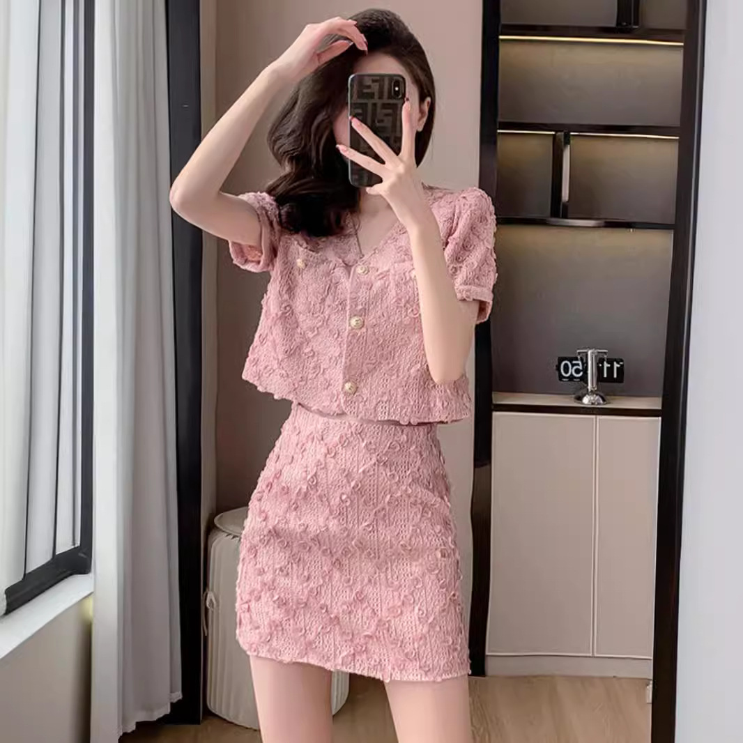 | nameOriginal | Xiao Xiang Style Pink Lace Top Skirt suit Women's Summer Dress with a Set of Two-piece Set for Small Ladies |