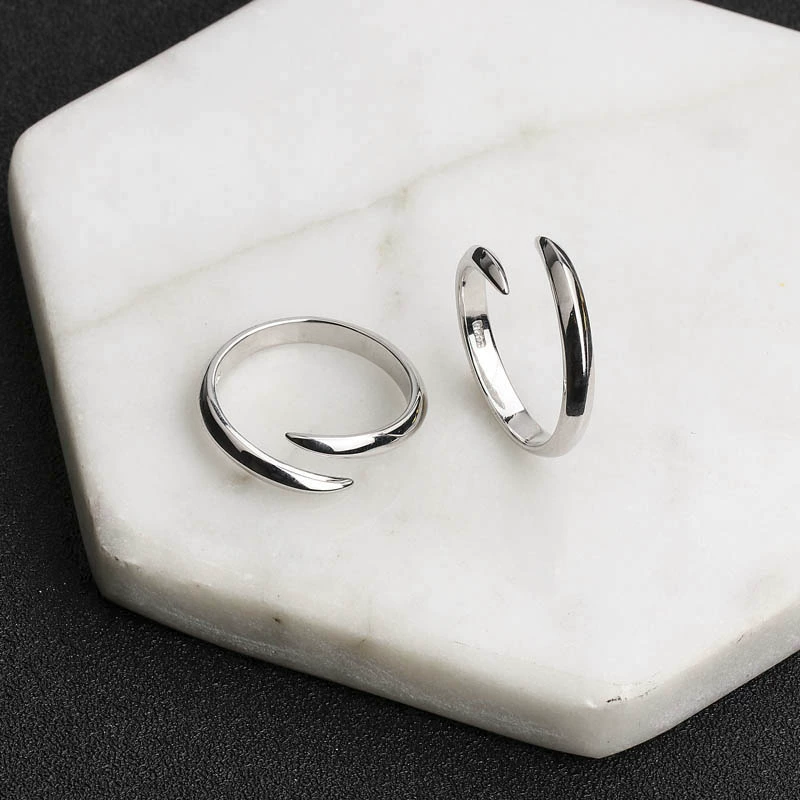 Xiao Zhan and Wang Yibo's same style ring Korean trendy men's s925 sterling silver open ring internet celebrity couple index finger tail ring for women