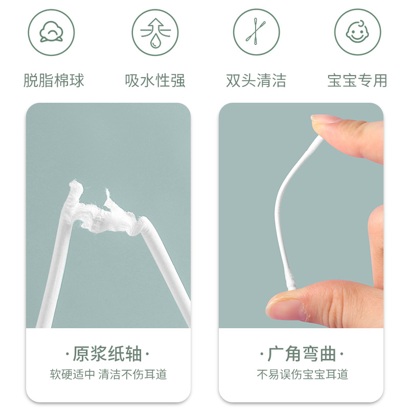 Xiaohan cat claw double-headed cotton swab disposable cleaning ear spoon ear picking baby cotton swab baby makeup cotton swab
