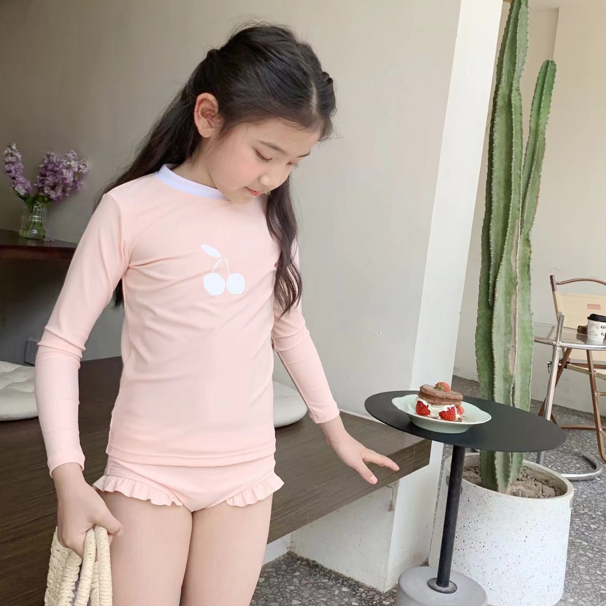 Xiaohua Home Spring and Summer New Light Meat Powder Printed Cherry Swimsuit Set New Powder