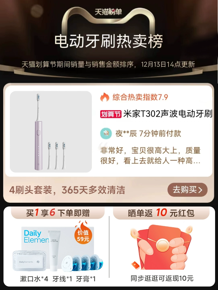 | nameOriginal | Xiaomi Official Flag Mijia Sonic Electric Toothbrush T302 Rechargeable Automatic Male and Female Student Couple Gift Box Gift |