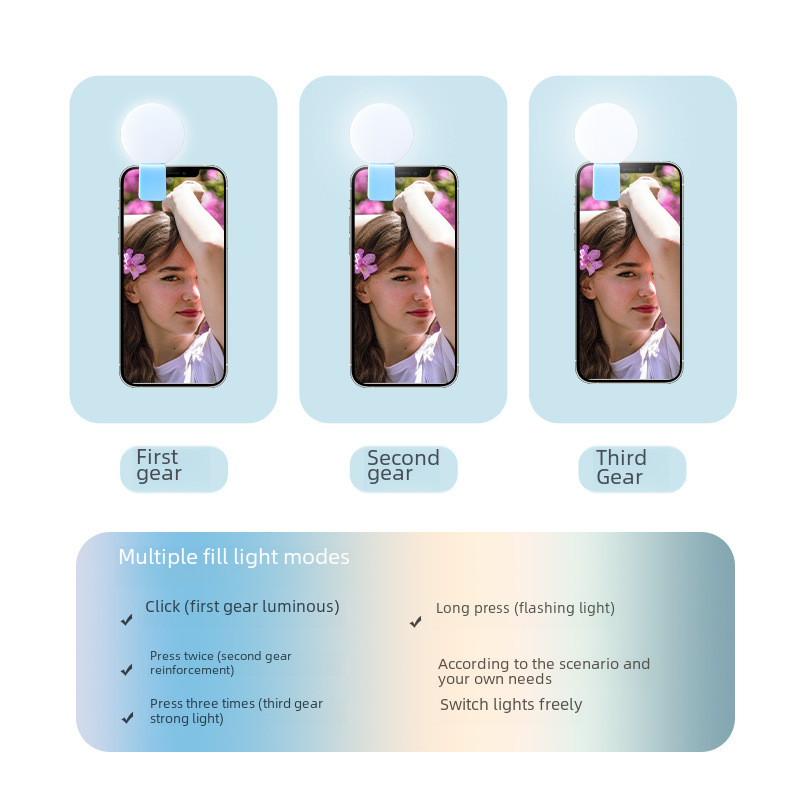 Xiaoq mobile phone fill light USB charging selfie beauty fill light LED live mobile phone fill light factory wholesale