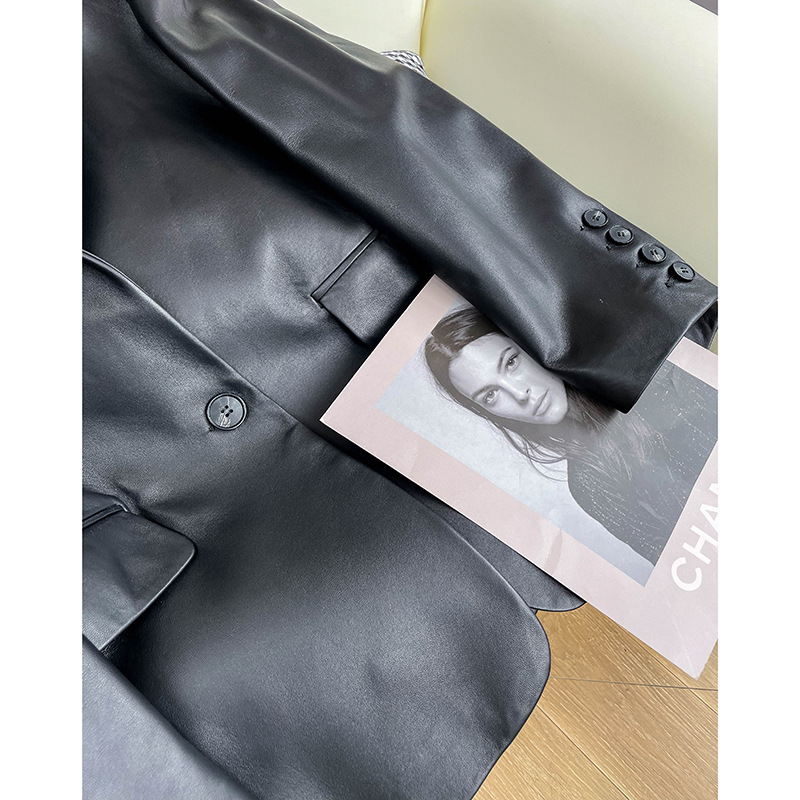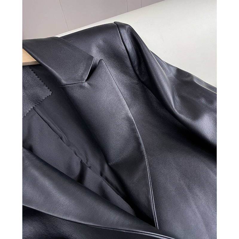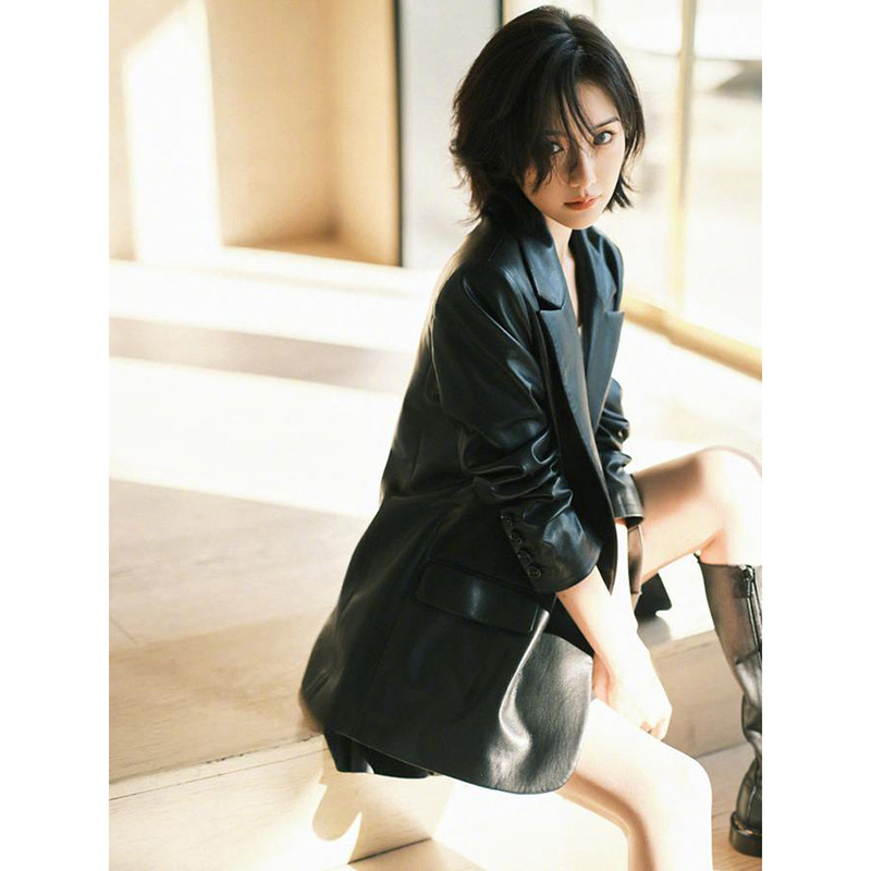 [Xiaotong same style] sheepskin leather suit super elegant slim mid-length leather coat female star same style